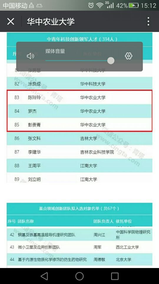 此次我校共有3名科学家(陈玲玲、罗杰、彭贵青)和1个研究团队入选。