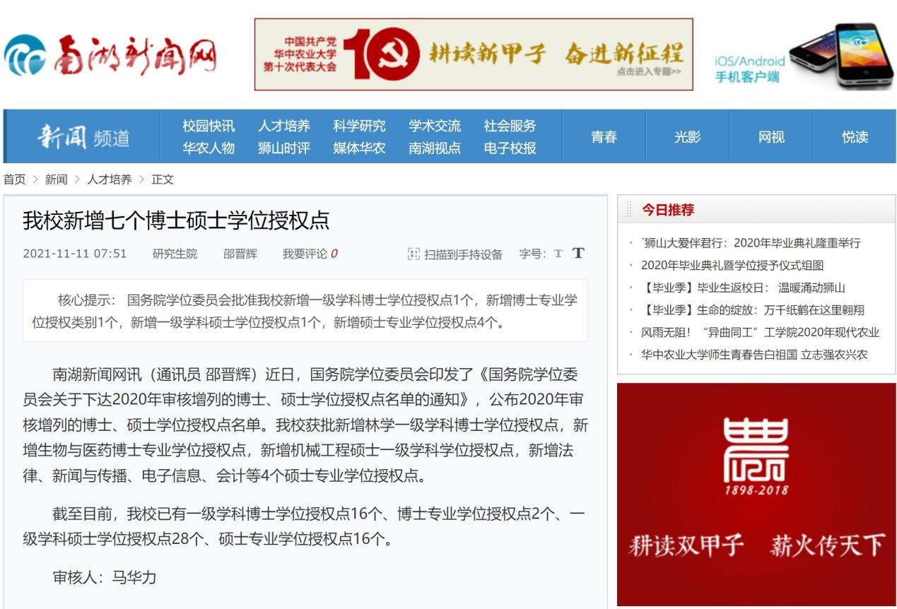 10月26日,国务院学位委员会印发了《国务院学位委员会关于下达2020年审核增列的博士、硕士学位授权点名单的通知》,公布2020年审核增列的博士、硕士学位授权点名单。学院申办的电子信息硕士专业学位授权点获批: