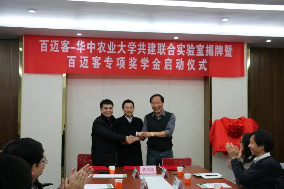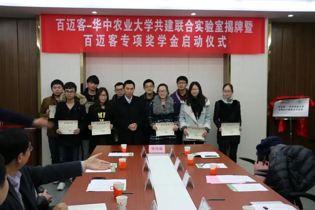 12月1日下午2:30,百迈客-华农共建联合实验室揭牌暨百迈客奖学金启动仪式在我校博中bz会员登录会议室举行: