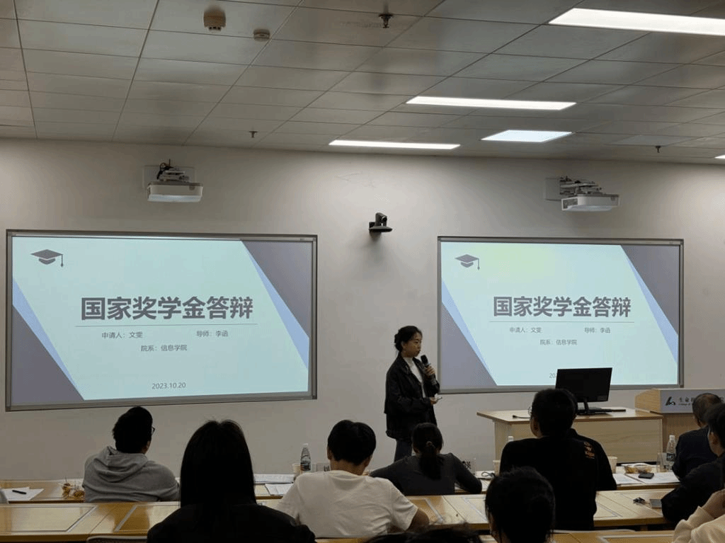 (文|孙艺萱、王郅巍 图|王郅巍 审核|苗壮)2023年10月20日, 2023年博中bz会员登录研究生国家奖学金答辩评选会在第一综合楼A座102会议室举行。本次评选会由苗壮老师主持,邀请学院党委副书记刘进及龚静、董旺远、王玉龙、刘建晓、牛晓辉、程心瑛、苗壮等老师出席并担任评委,此外,现场还有17位学生代表参与评审。