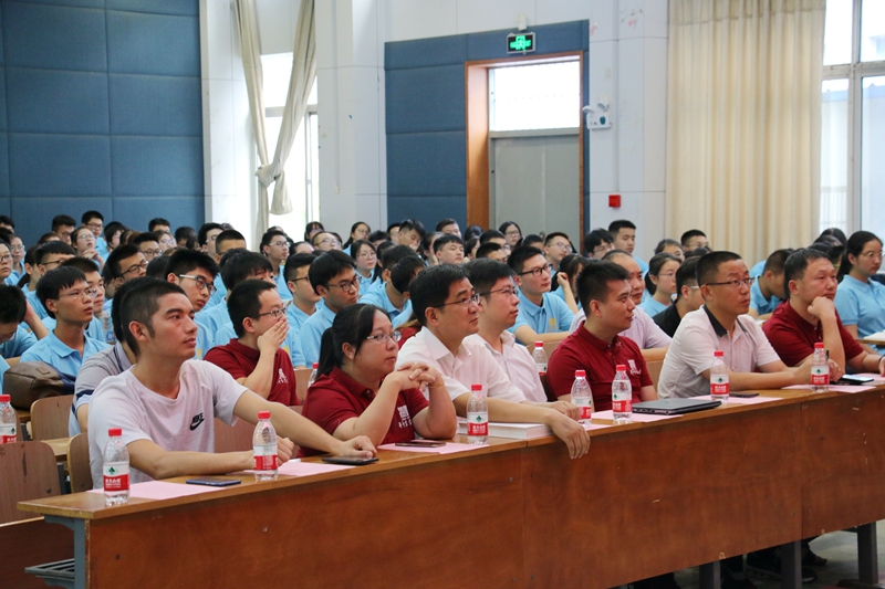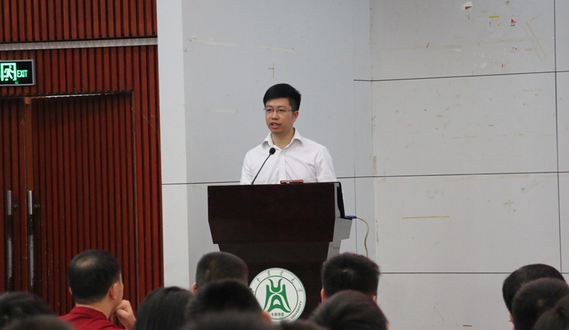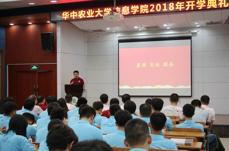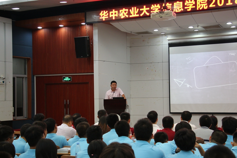 开学典礼邀请到了2005级校友、品和智慧科技创始人王强先生到场与新生分享他的大学生活。王强本科就读华农,硕士在华师,又考上了华科国家实验室的博士。但王强一上来自嘲是“学渣”,讲述了自己求学时以及工作后的经历,并展望了计算机技术的前途与未来,激励新生努力学习,永攀技术高峰,他给新生朋友介绍了包括AI、VR、自动驾驶、图像识别、机器学习等在内的信息技术,告诉大家信息时代已经到来,技术深刻地改变生活,现在“+互联网”时代已经来临。