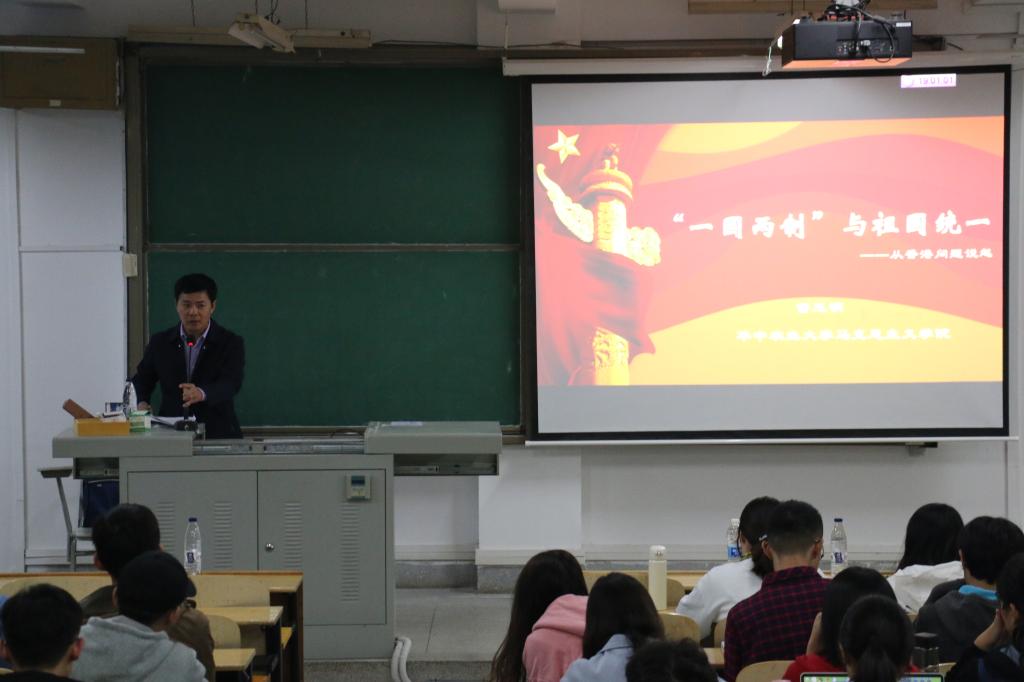 生物信息1701班宁晓彤说:“雷老师的讲座十分精彩,不只是去单独地的讲“一国两制”的理论,而是结合了近期的热点事件,比如说NBA莫雷事件,“港独”事件,以这些我们了解的热点事件,引出“一国两制”方针的理论,讲座循序渐进,加深了我对于“一国两制”方针的理解,且更加明白了其必要性。我深刻认识到,作为一名大学生,必须努力学好科学文化知识和党的理论知识,为建设更加美好的祖国贡献自己的一份力”。实现祖国完全统一,维护国家主权和领土完整,进而实现中华民族伟大复兴,已经深深熔铸进了中华民族的历史意识,成为全体中国人民坚如磐石的共同追求。没有任何力量能够阻挡中国人民和中华民族的前进步伐!
