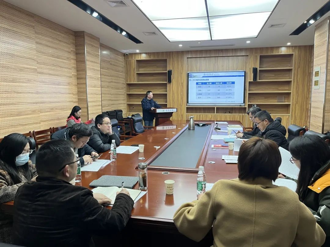 最后,学院举行毕业班班主任专题会议,党委副书记刘进对考研情况和就业进展进行了数据分析,结合毕业生一人一档,面向毕业班班主任提出了针对性建议。他希望毕业班班主任,一是了解学生欠学分和毕业论文进展情况,与辅导员和教务员老师进行积极沟通,开展帮扶和指导;二是了解考研学生初试成绩,关注跟踪上线情况,做好复试和调剂建议和指导,尽力帮助学生提高考研录取率;三是积极开展就业动员,宣传树立就业典型,营造班级浓郁就业氛围,与学生和家长交流,帮助他们形成科学理性的就业观念;四是利用自身专业和社会资源,联系用人单位,提供就业信息。