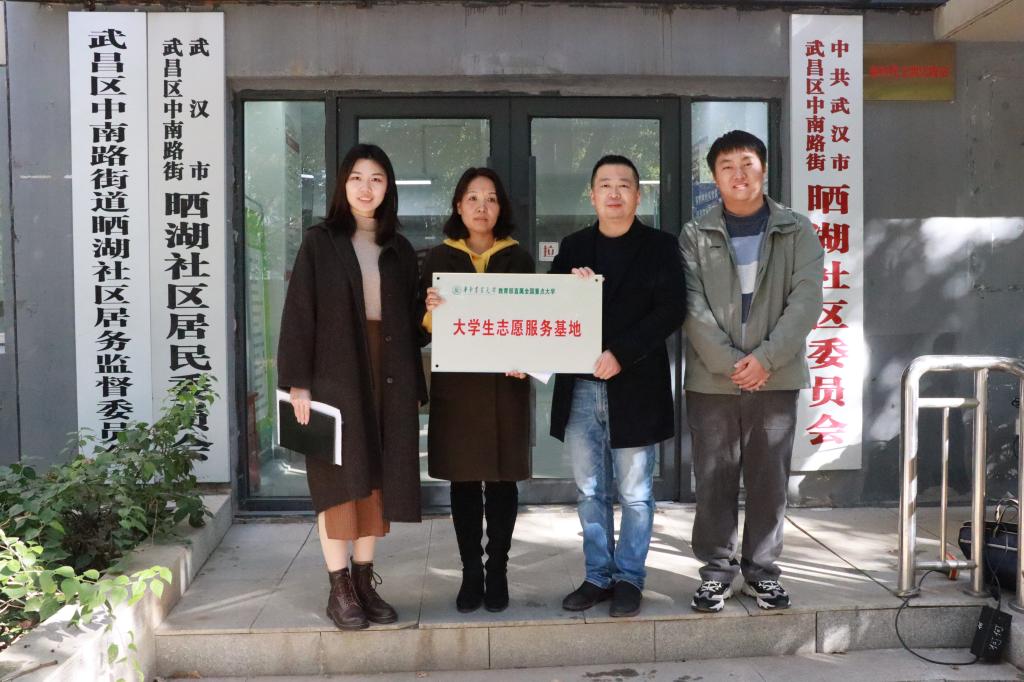 12月7日上午,博中bz会员登录就志愿服务合作事宜走访武昌区中南路晒湖社区,签署华中农业大学大学生志愿服务基地共建协议书并举行挂牌仪式。晒湖社区党委书记王素萍、学院党委副书记刘进、辅导员刘洋、袁嘉晨出席了仪式。