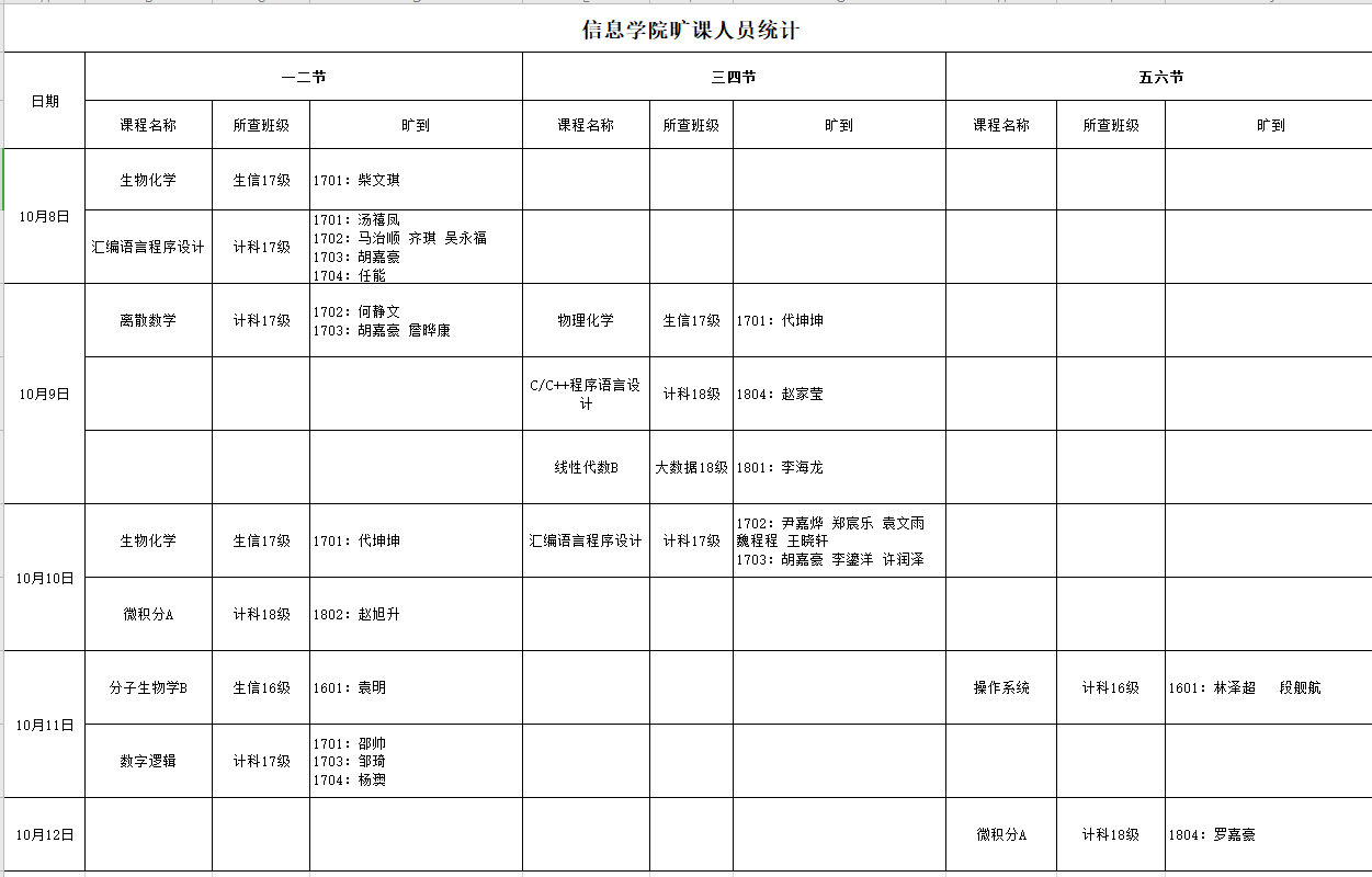 博中bz会员登录第6周考勤记录(10.8-10.12)