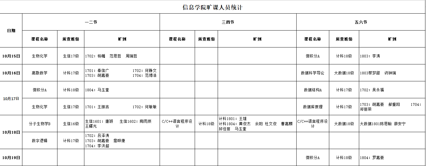 博中bz会员登录第7周考勤记录(10.15-10.19)