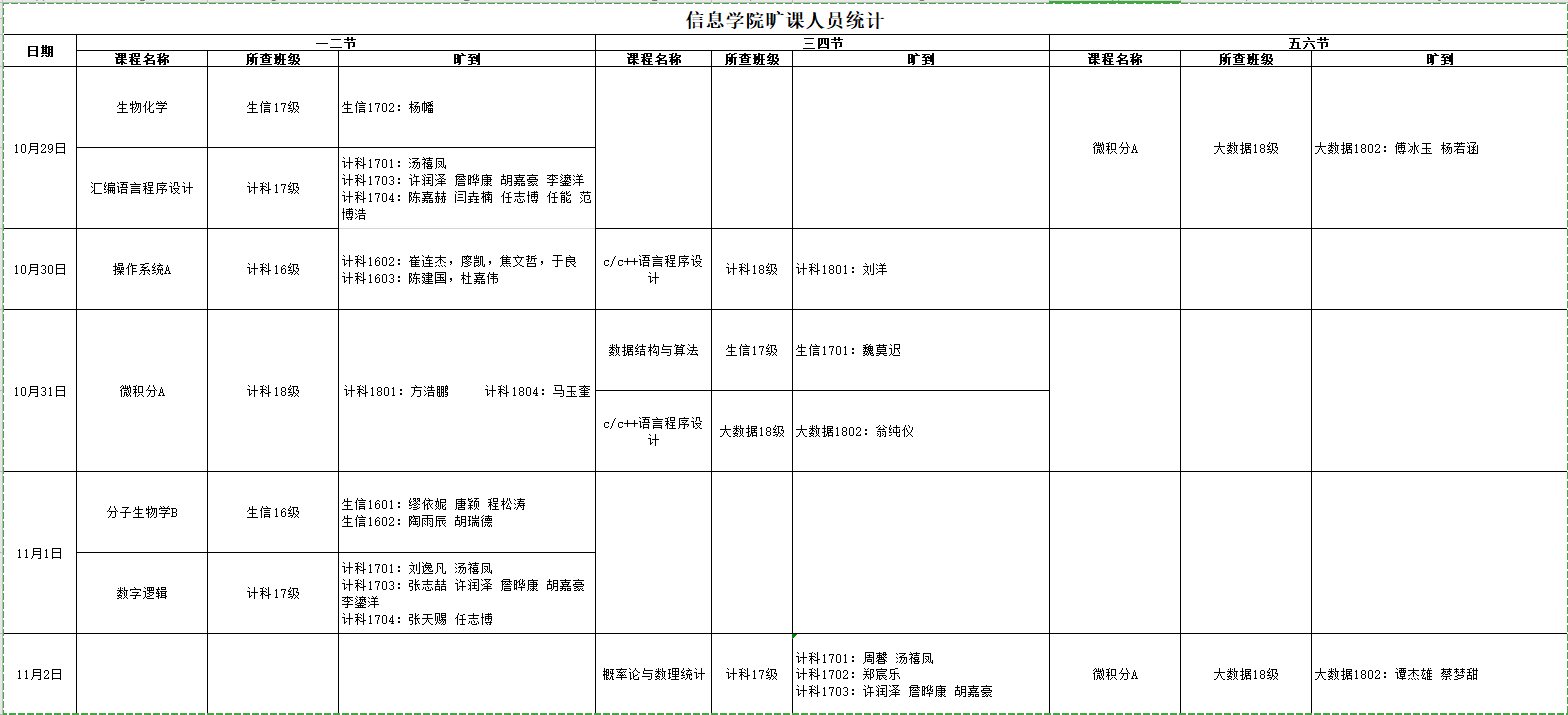 博中bz会员登录第9周考勤记录(10.29-11.2)