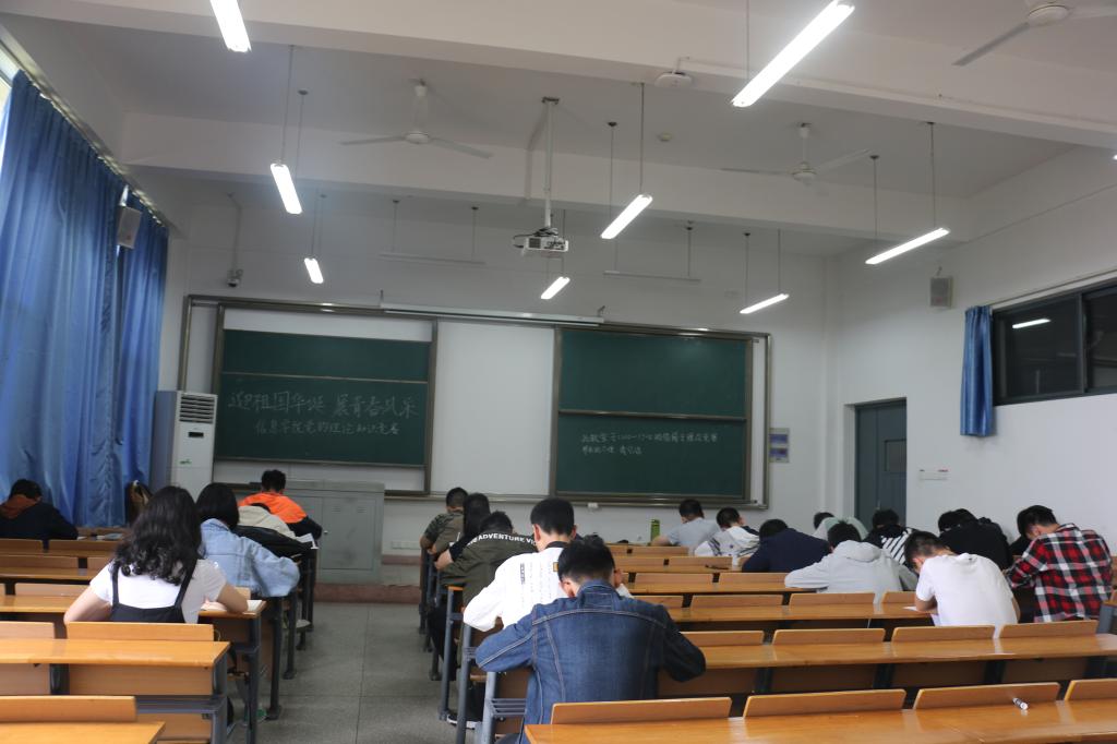 本次竞赛试题以党章和时事政治为主,内容涉及党章和党的基本理论知识、十九大精神等国家政策以及时事新闻等。考前,学生党员们作了充分准备,考场上,每人都认真答题,考场秩序井然。
