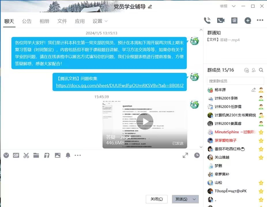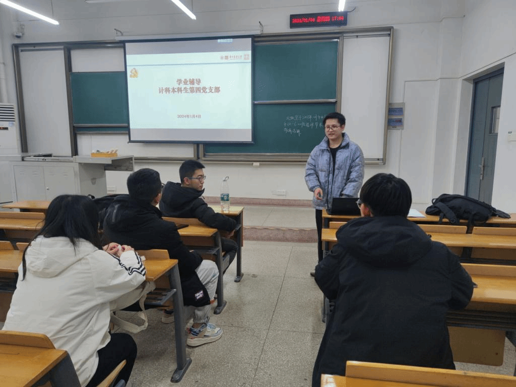 在计科本科生第四党支部的学业辅导活动中,李绅同志先向2023级同学们说明了大学的课程安排及构成,强调了考试的重要性与严肃性。同时收集了各位同学各科目的辅导需求,有针对性的协助同学们制定了高效的备考计划。在整个辅导过程中,氛围良好,交流火热。