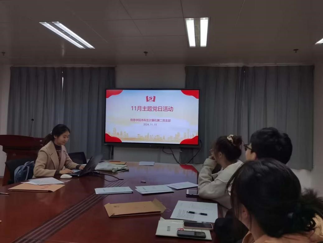 计科本科生第二党支部副书记刘适雨主持开展了11月主题党日活动,会议首先传达了习近平总书记视察湖北时的重要讲话精神。党员们通过学习深刻理解了习近平总书记重要讲话中“稳中求进”的工作总基调,以及“久久为功、善作善成”的实干精神。会议还学习了习近平总书记的回信精神,党员同志们深刻领悟到习近平总书记在两封回信中对青年党员在学习和实践中锻炼能力、增强本领、自主创新、担当重任,积极投身中国式现代化建设的殷切期盼。最后,支部组织党员集体学习了党的二十届三中全会精神,深刻理解全面深化改革的新思想、新观点和新论断。会议强调,作为新时代大学生党员,必须主动适应新时代新要求,努力提高专业素养,践行改革创新精神,为实现中国式现代化贡献智慧和力量。