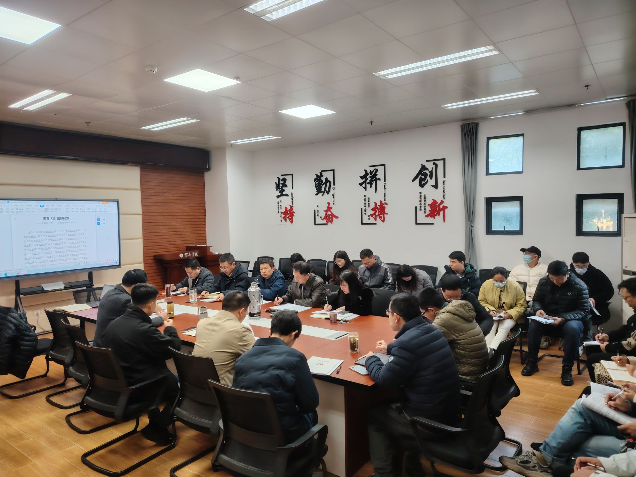 随后,郑学刚结合了自己的学习和理解,对党代会报告进行了解读。谈到“五个必须”,他说打破惯性思维和路径依赖,敢于与往事干杯,这是学院以及老师们需要思考领会的问题。谈及“以质图强、融创致新”的内涵阐释,强调指出,这是学校事业发展的“战略指引”,需要我们要反复品味、深刻领悟。郑学刚表示,学校后续将会对《报告》进行系统深入的解读,我们的学习领悟将不断深入,我们也将及时全面准确地向全体党员和师生员工宣传、传达,大家要先学一步先行一步。《报告》提出的十年奋斗目标和部署的五年重点工作中,方方面面都对博中bz会员登录加快发展提出了很高要求,我们要化压力为动力,学院要拟定好时间表、路线图,责任到岗、责任到人,每位教职员工都要明晰方位,定好坐标,共同回答好“华农华章,信息何为”。